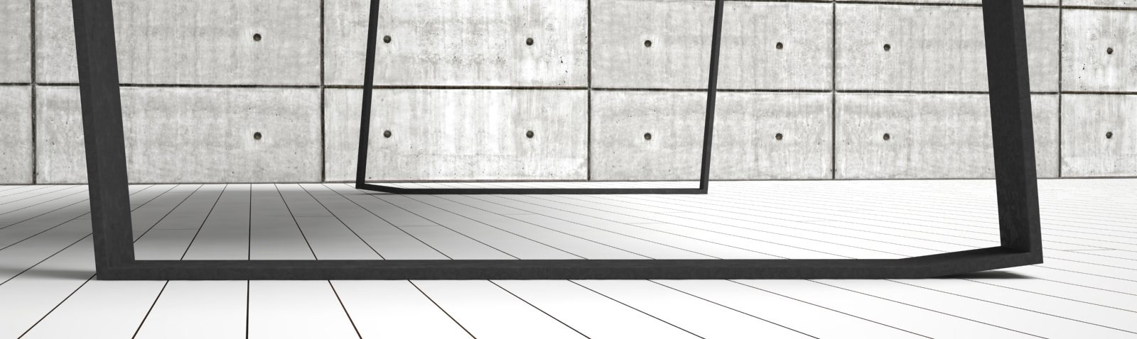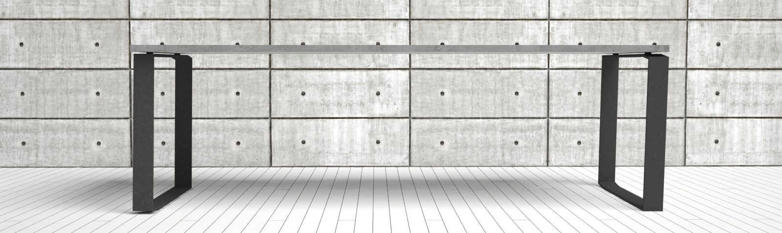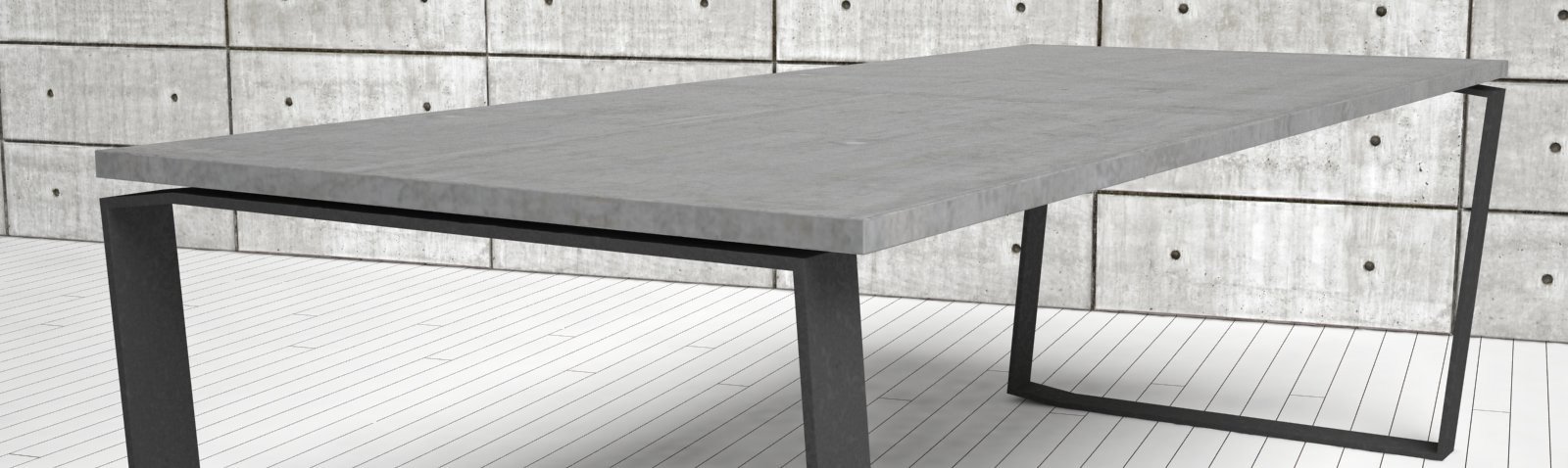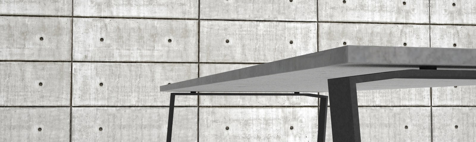 Harmoniously imbalanced design. A slightly askew dining table and backless chairs that have subtle detailing that suggests an imbalanced form. Upon further analysis, one sees that the form is, in fact, balanced, and a certain level of appreciation is achieved. The legs are formed from cold-tempered blackened steel, and the tops are slabs of a specially poured concrete. We have developed a lightweight hybrid concrete by mixing in fiberglass and mixing at a high speed to add air to the consistency (think whipped cream). The material is cutting edge and called GRC (Glass Reinforced Concrete). Dimensions are 84x42x30"h for the dining table and 24x22x18.5"h for the backless chairs.